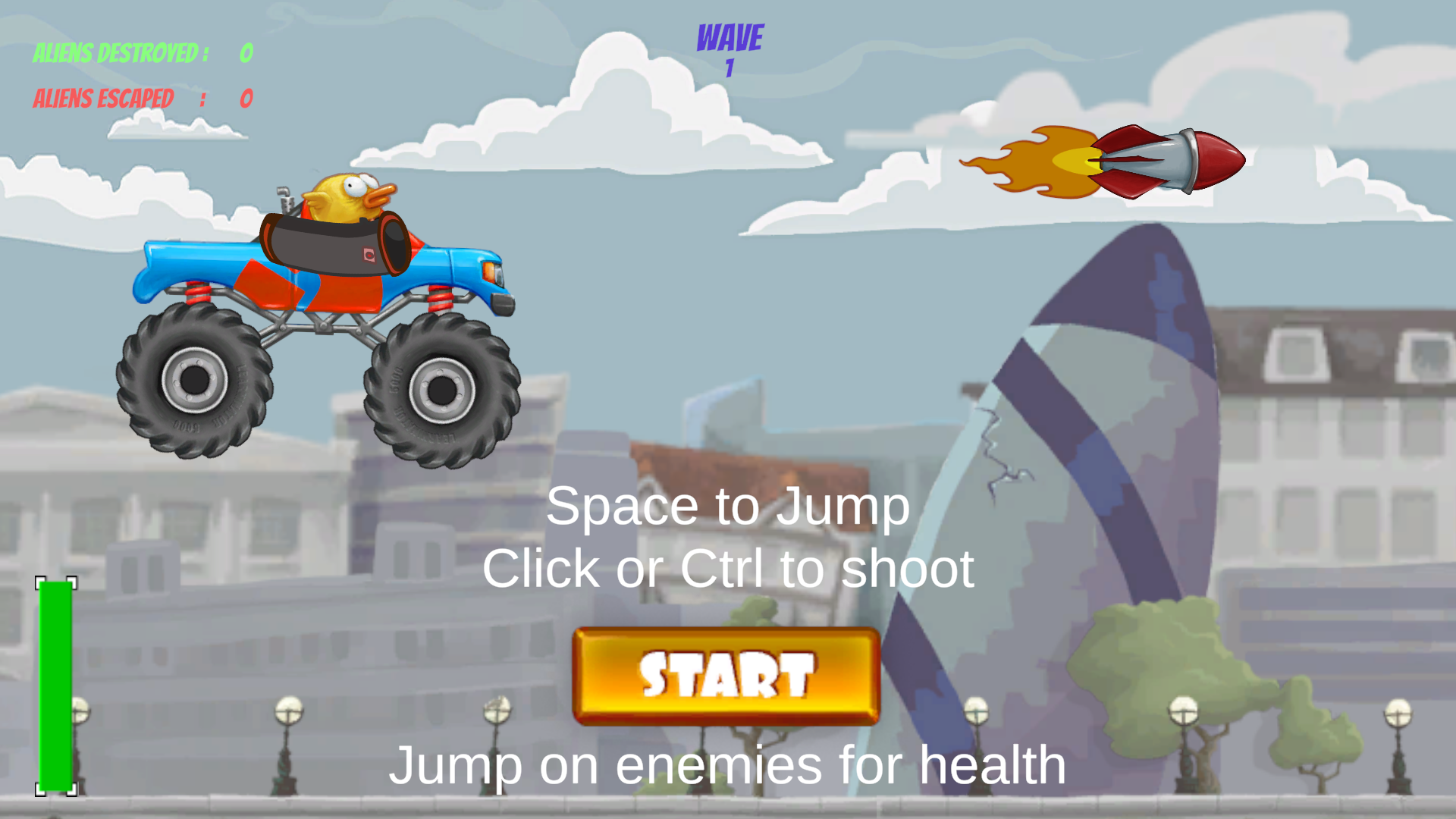 Aliens have arrived and they are ready to destroy! Help Truck Duck jump, shoot, and smash those aliens right into the ship they flew in with! With wave after wave of aliens until... Play Truck Duck Today!